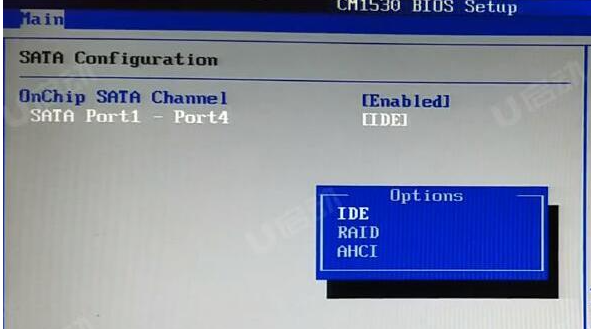 2、使用鍵盤的方向鍵向下選擇【SATA Configuration】菜單,進入后將【SATA Port1-Port4】選項修改為【AHCI】。