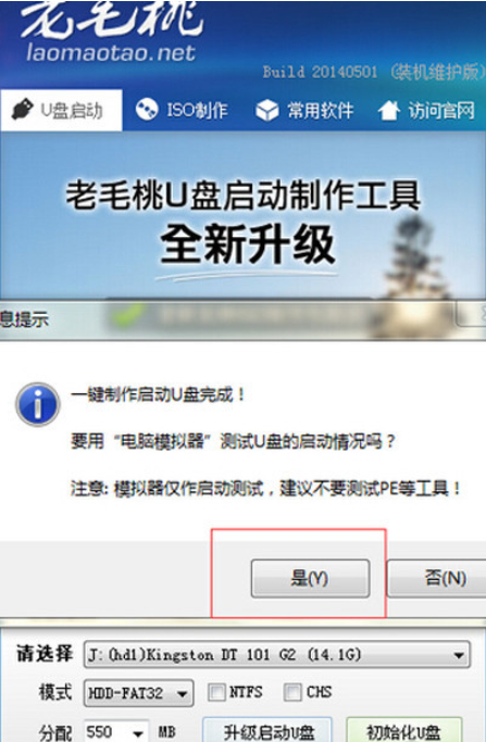 打開老毛桃;插入U盤,點擊一鍵制作成usb啟動盤,軟件就開始制作了。制作完畢后,就開始測試U盤菜單測試,彈出U盤啟動菜單,表示U盤啟動盤制作成功。