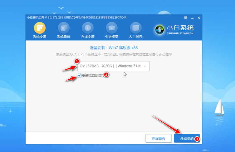 6、將系統安裝到系統盤c盤,點擊開始安裝。