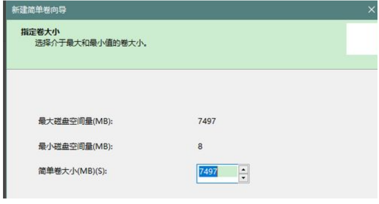 7、在“簡單卷大小”和“分配以下驅動器號”點擊“下一步”,保持默認設置。
