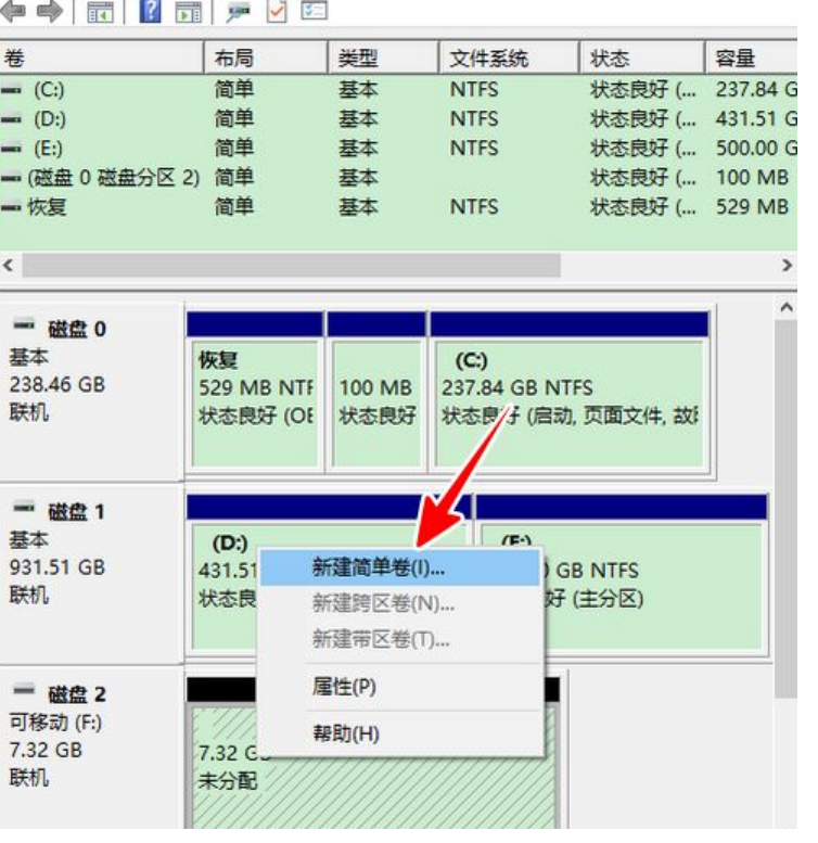 刪除卷完成后,重新為 U 盤新建卷并格式化;