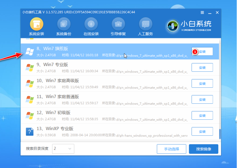 5、進入pe系統后,打開桌面上的小白裝機工具,選擇需要安裝的系統點擊安裝到c盤,安裝完成后自動重啟。