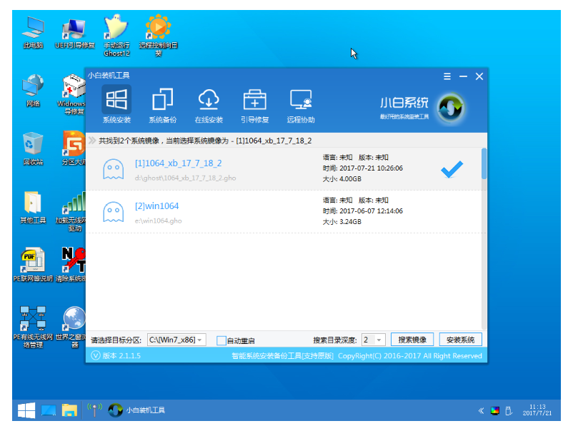 10、最后來試驗下U盤啟動的最大作用 – 重裝系統!大家只需打開桌面上的小白PE安裝工具,然后點擊瀏覽選擇剛剛下載到U盤里面的系統文件,隨后點擊選擇目標分區系統盤C盤便可以進行系統安裝了,過程只需等待安裝完成就可以了。
