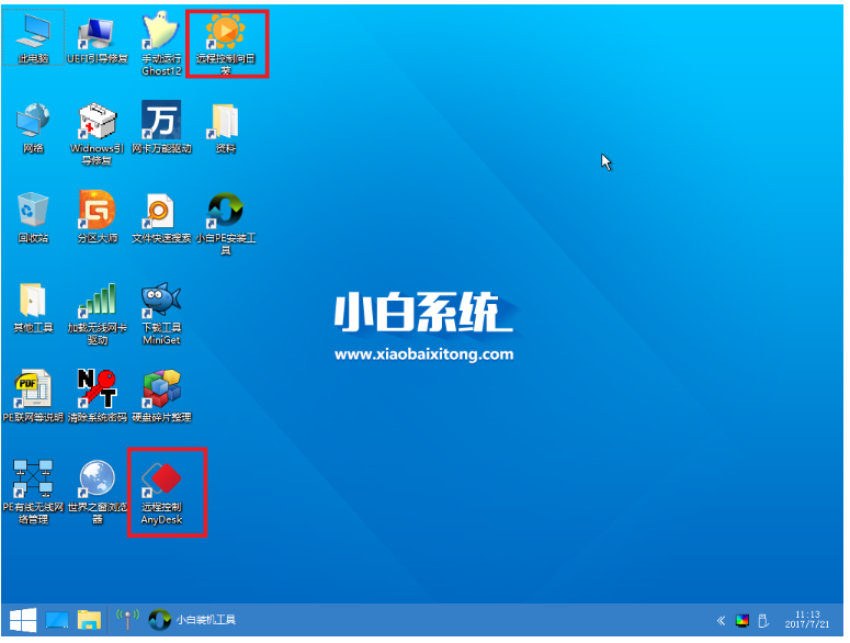 9、接著我們可以在桌面上看到有各種維護系統的工具,如磁盤檢測/修復工具、GHOST工具、殺毒工具、密碼恢復工具等等。計算機可以通過U盤啟動計算機并對系統進行硬件或軟件的維護。除此之外如果我們不太擅長于電腦還可以上網通過聯系小白客服中心來進行遠程協助操作。