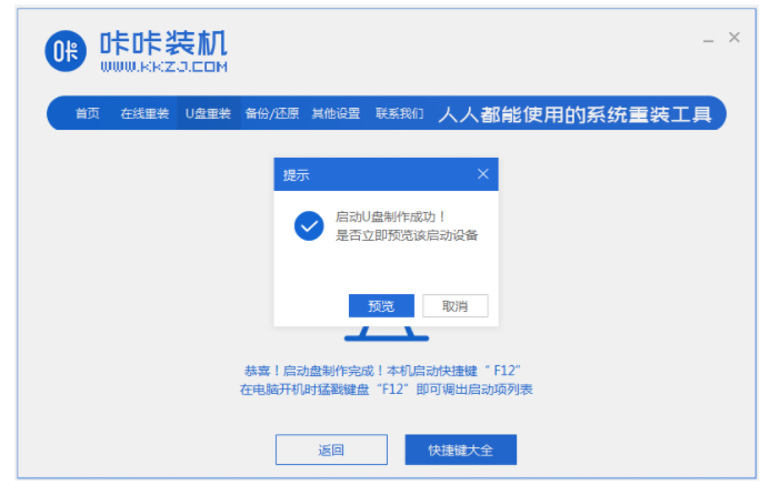 2、根據軟件提示進行U盤系統安裝盤的制作。