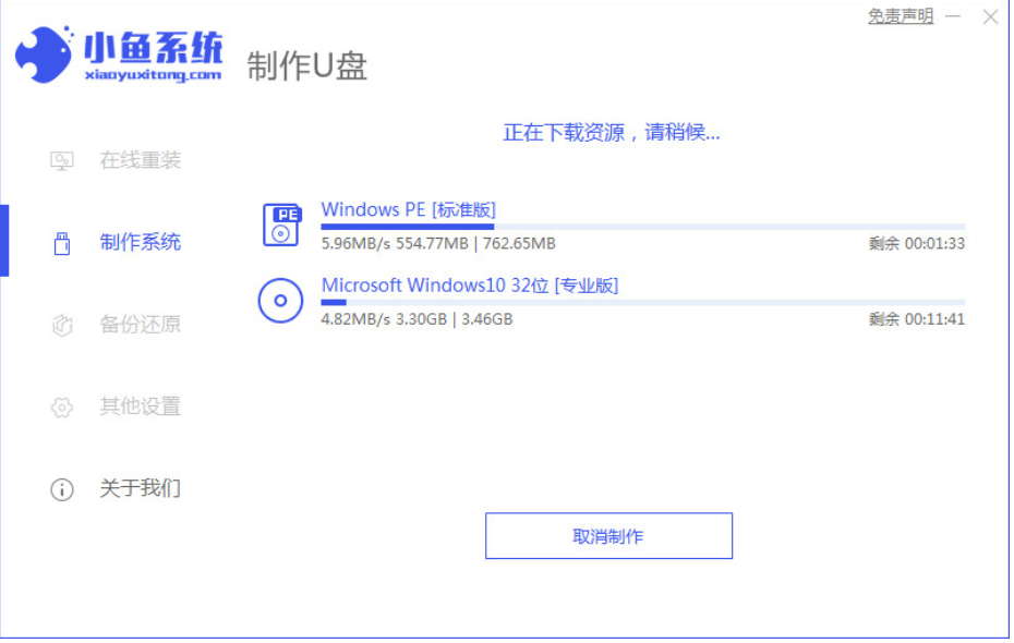 3.開始制作pe系統和下載鏡像文件,我們需等待下載完成。