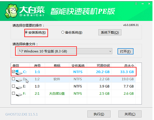 軟件版本:大白菜超級u盤裝機工具 6.0