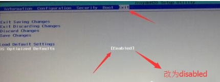 2、然后切換到【Exit】選項下,將【OS Optimized Defaults】設置為【Disabled】。