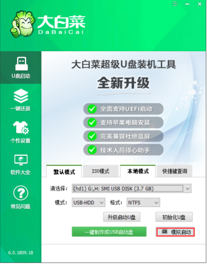 6.完成后,點擊模擬啟動(通常有三個選項,選擇BIOS)OS)圖所示的界面意味著U盤啟動盤的制作已成功完成。