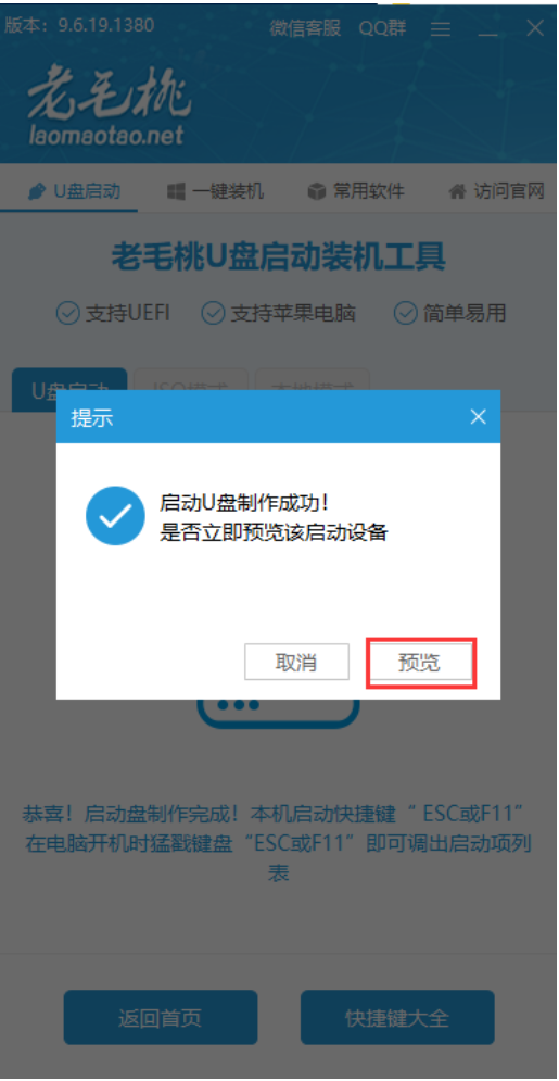 完成寫入后,在彈出的信息提示框中點擊“預覽”按鈕。