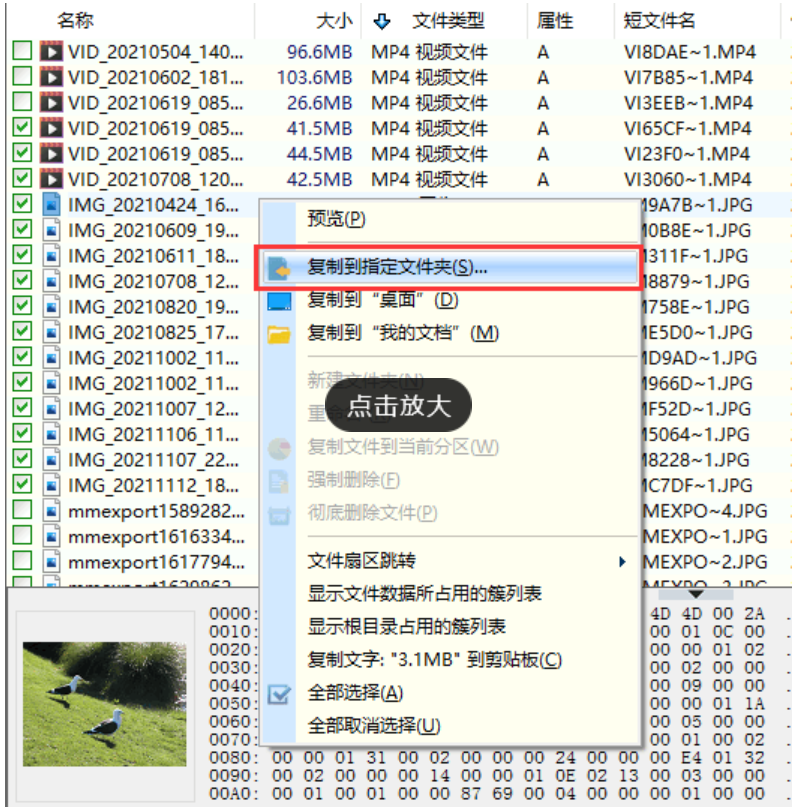 4、勾選需要恢復的文件,點擊鼠標右鍵,然后選擇“復制到指定文件夾”。