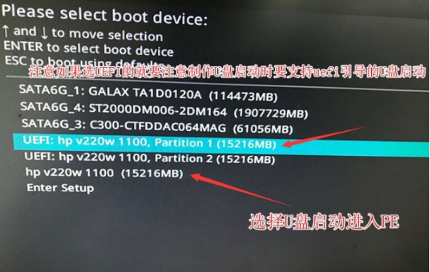 6、插入U盤啟動盤,重啟按ESC,選擇U盤啟動項,回車。