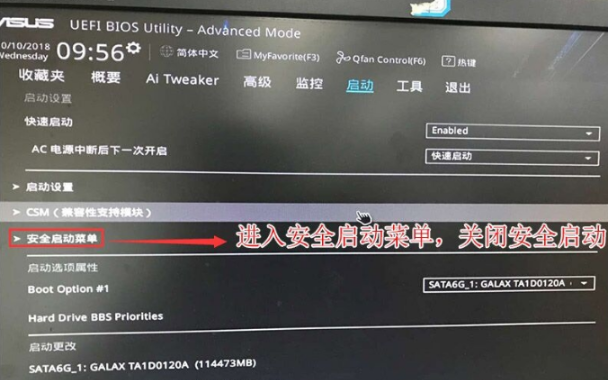 2、選擇安全啟動菜單,回車,關閉安全啟動。