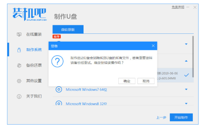 3、確定已提前備份U盤數據后,點擊確定。