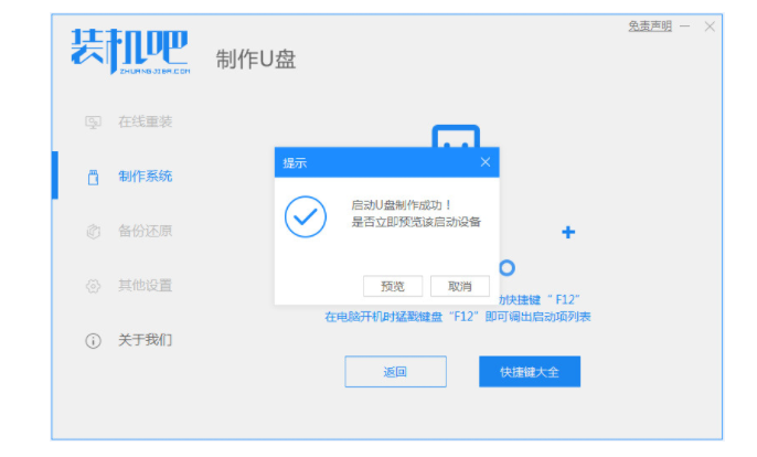 1、下載并運行裝機吧軟件,插入U盤,打開軟件,選擇制作系統。