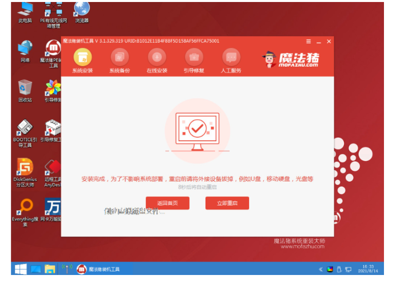 5、等待軟件自動開始安裝,完成后選擇立即重啟。
