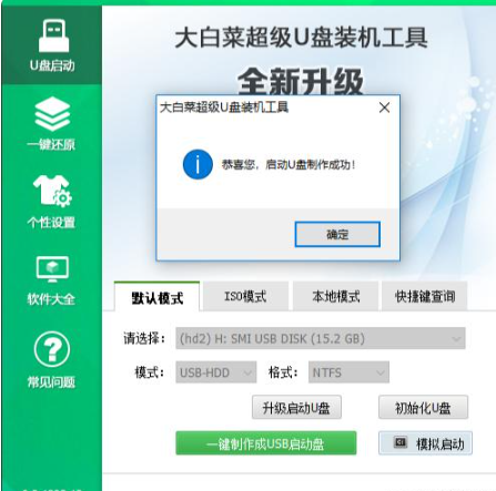 軟件版本:大白菜超級U盤裝機工具V6.0