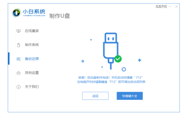 1、安裝小白一鍵重裝系統,插入U盤,根據提示制作u盤啟動盤。