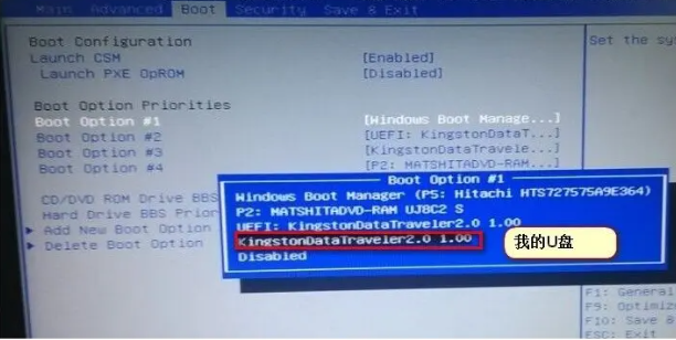 2、在boot菜單下找到Boot Option #1,選中U盤;