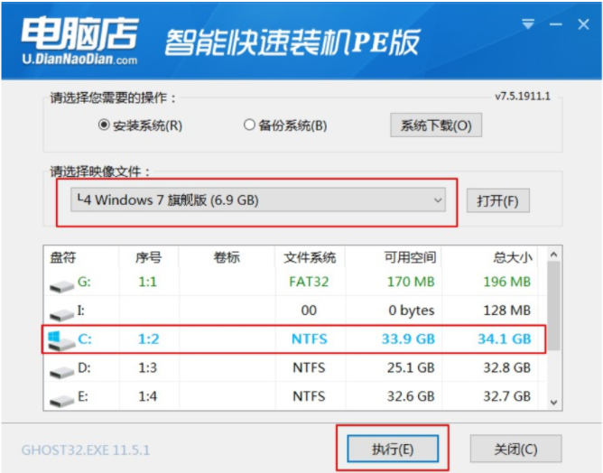 10. 進入pe桌面后,打開一鍵裝機,選中已下載的鏡像系統,安裝在“C盤”—點擊“執行”,跳轉到第5步。如果沒有提前下載鏡像系統,請繼續閱讀第4步。