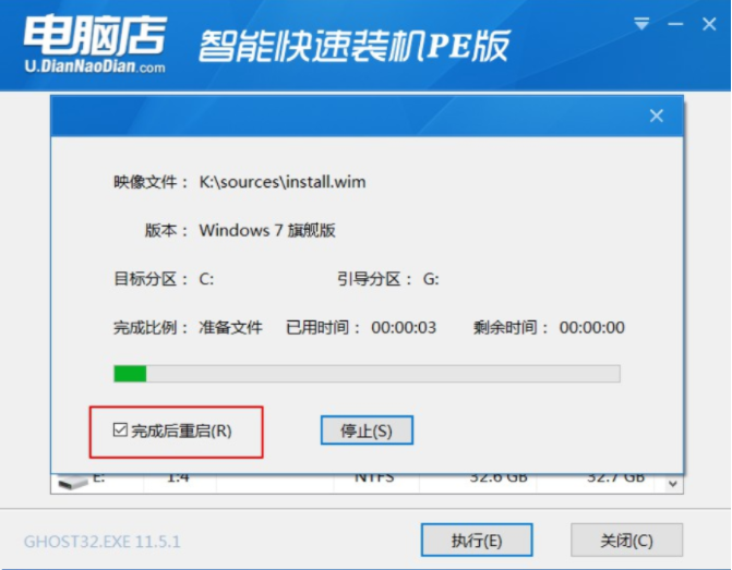 12. 根據提示重啟筆記本并拔掉u盤,等待電腦自動部署,最后進入win7系統桌面即u盤重裝系統成功。