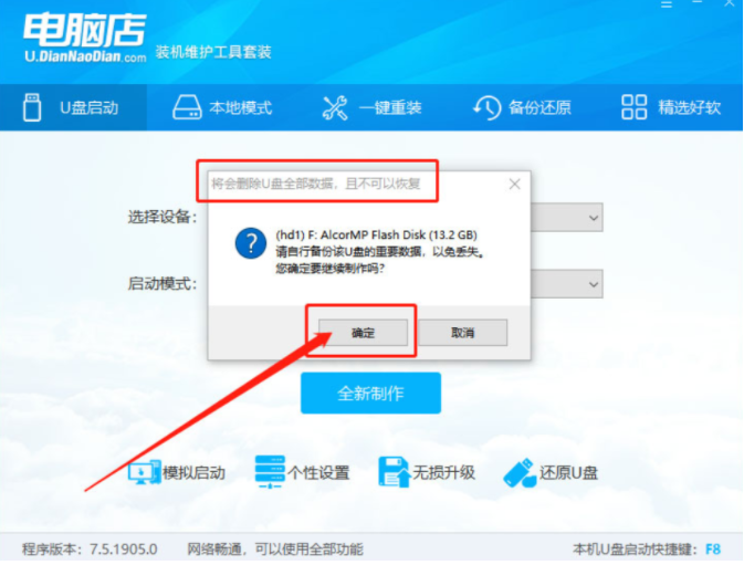 1. u盤重裝系統,首先,下載一個電腦店U盤裝機工具軟件,下載后打開,設置制作u盤啟動盤的u盤、啟動模式以及分區格式。