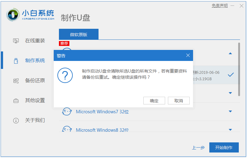 3、制作u盤的過程中會格式化u盤,點擊確定進入下一步。