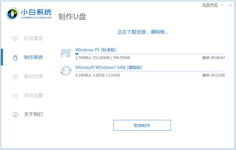 4、等待軟件自動制作啟動U盤以及將下載系統和備份的資料導入到U盤里面。