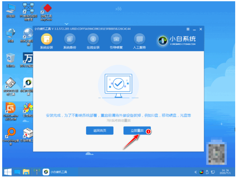 6、等待系統安裝完成后,拔掉u盤,再次重啟電腦。