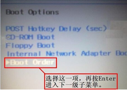 5、進入Boot Option子菜單后,來選擇“Boot Order”啟動命令,回車進入子菜單。