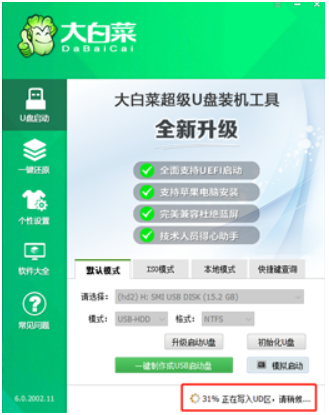 以上便是大白菜u盤啟動盤制作步驟教程,操作比較簡單,只需打開軟件設置相應的系統制作,等待軟件自動制作啟動盤完成即可,有不清楚的網友可以參照教程操作。