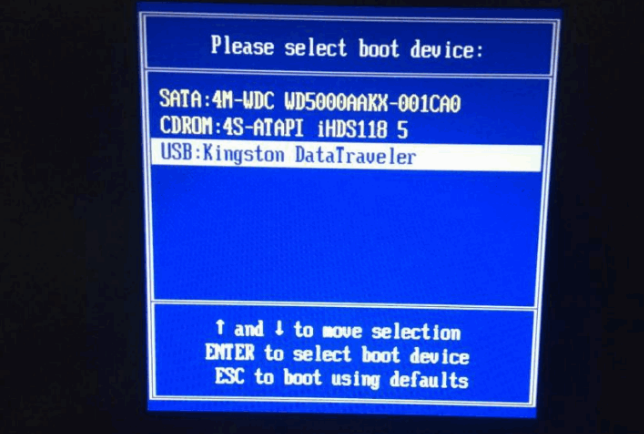 步驟四:插入啟動盤進電腦中,開機不停按啟動熱鍵進啟動頁面,選擇u盤啟動項,按回車鍵確定進入到pe選擇頁面,選擇第一項pe系統回車進入即可。