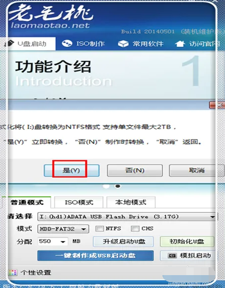 3、一般U盤的格式都是fat格式,不過我們重裝需要用到NTFS格式,因此需要將其“確定”轉化成NTFS格式。