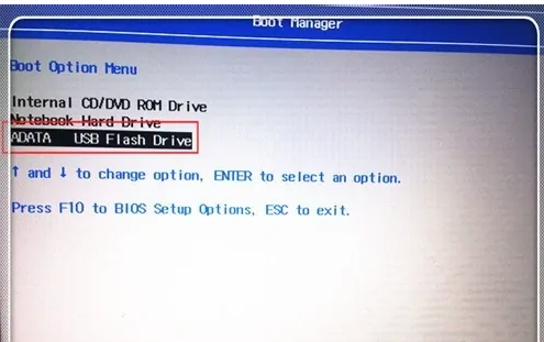 2、打開需要安裝的電腦,按住“Esc”鍵等啟動熱鍵,直到出現“Start Setup Menu”后松開,然后按住F9鍵進入到Boot Device Option”,選擇“USB flash device”選項進入。