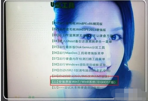3、使用鍵盤上下鍵選擇“安裝原版win7/win8(非ghost版)”選項,按下回車鍵即可進行系統安裝。