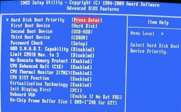 2、繼續在高級BIOS設置(Advanced BIOS Features)界面選擇硬盤啟動優先級:Hard Disk Boot Priority,如上圖。