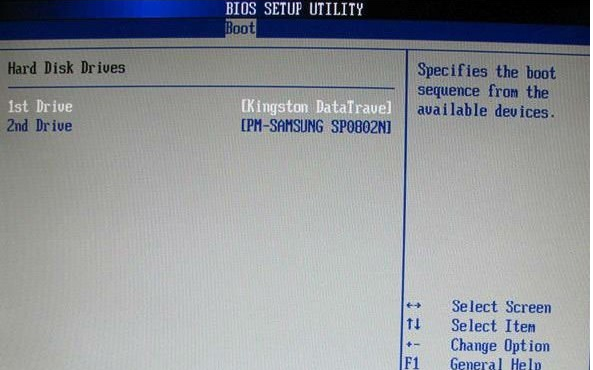 3、如上圖,在硬盤驅動器“Hard Disk Drives”界面選擇U盤為第一啟動設備“1st Drive”。如果先在“Hard Disk Drives”里面選擇U盤為第一啟動設備,那么這里就會顯示有U盤,直接選擇U盤為第一啟動設備,如圖下圖所示。