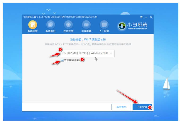 6、選擇安裝到c盤,然后點擊開始安裝。