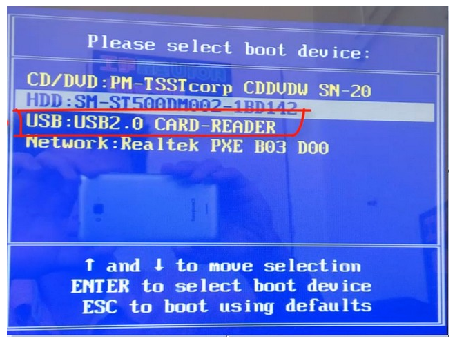 4、然后將U盤插入需要重裝系統的電腦,開機時立即不斷按“啟動快捷熱鍵”,隨后出現boot選擇界面,選擇usb選項,回車進入pe系統。