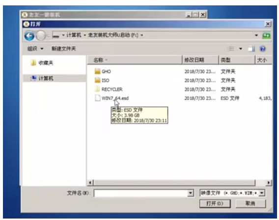 6、選擇U盤中下載好的系統鏡像,點擊打開。