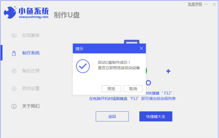 4.啟動盤制作完成之后,點擊重啟電腦。