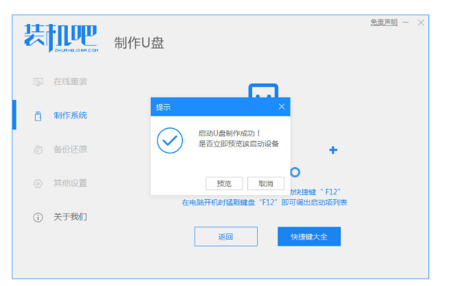 4、制作完成后,預覽啟動快捷鍵,放回重啟電腦。