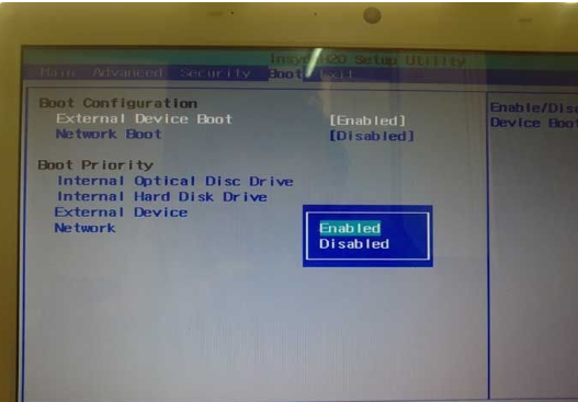 1、按f2按鍵進入bios主板設置,選中“External Device Boot”,設置為Enabled;