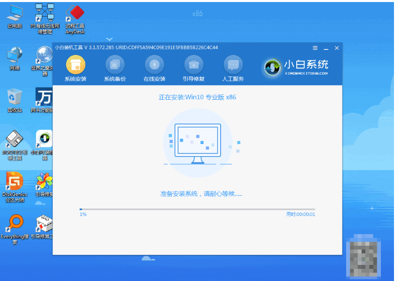 2.當進入pe后,裝機工具會自動進行系統的安裝,無需我們手動進行操作。