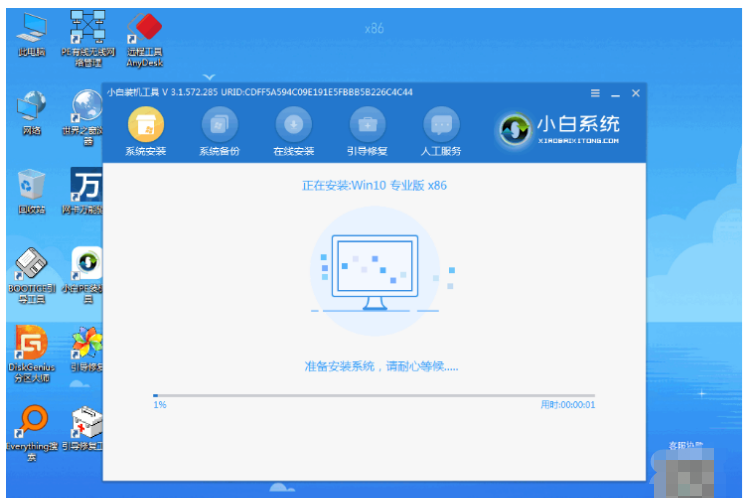 6.當進入pe系統后小白裝機工具會自動重裝系統,耐心等待即可。