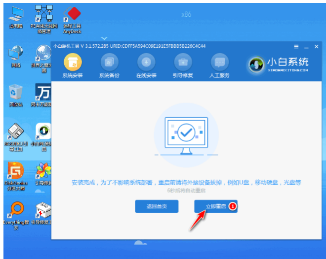7.系統安裝完成之后,提示我們重啟電腦時,點擊立即重啟。