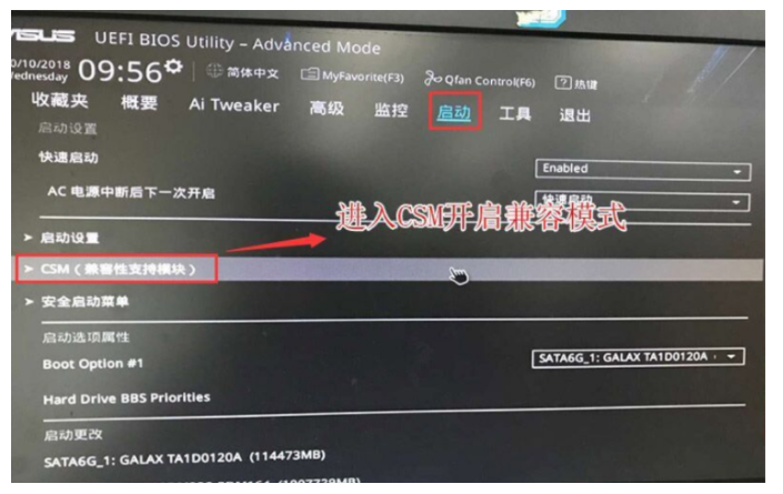 2、在Boot選項卡中,找到CSM兼容模塊,選擇Disabled(關閉),把CSM由Disabled改成Enabled,開啟兼容模式。