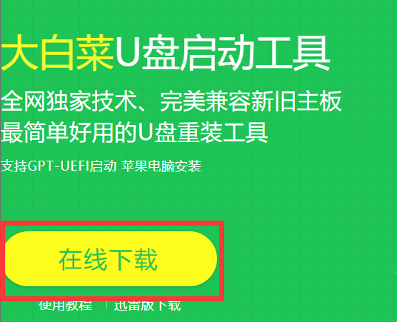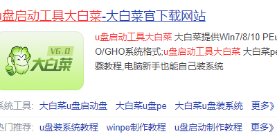 1、在搜索引擎上查找大白菜u盤啟動盤制作工具。