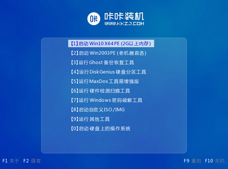 軟件版本:咔咔裝機一鍵重裝系統和一個8g以上的空白u盤