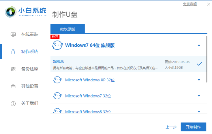 2、選擇win7系統之后,點擊開始制作啟動盤即可。